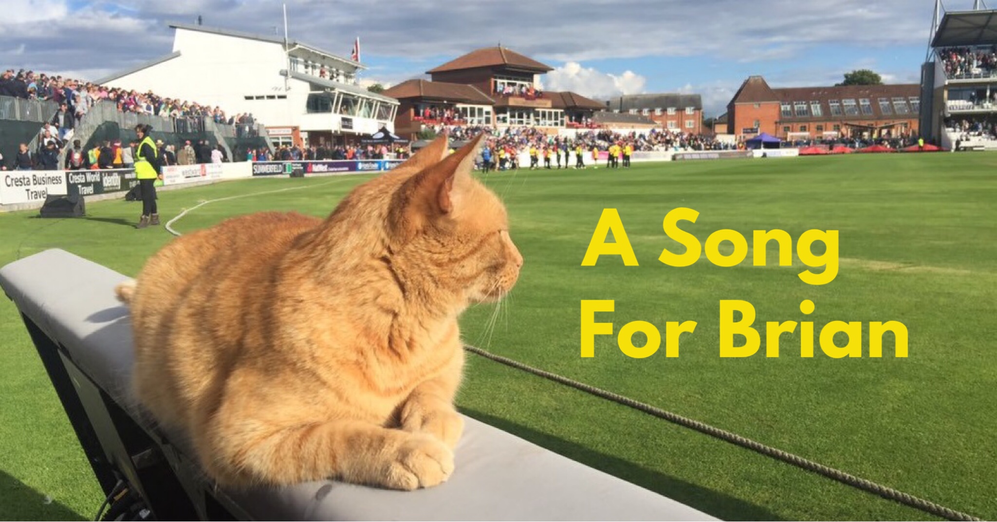 Late last night I was wandering the streets of Taunton when suddenly I heard the plaintive sound of a cat meowing. Looking around me I saw, Brian the club cat being consoled by the team mascot Stumpy. This is what I heard him singing!