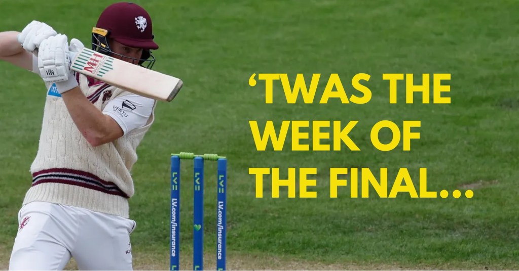 This week Somerset played Hampshire at the County Ground in Taunton. An epic performance deserves to be immortalised in verse. Until such time as it is, this will have to do…